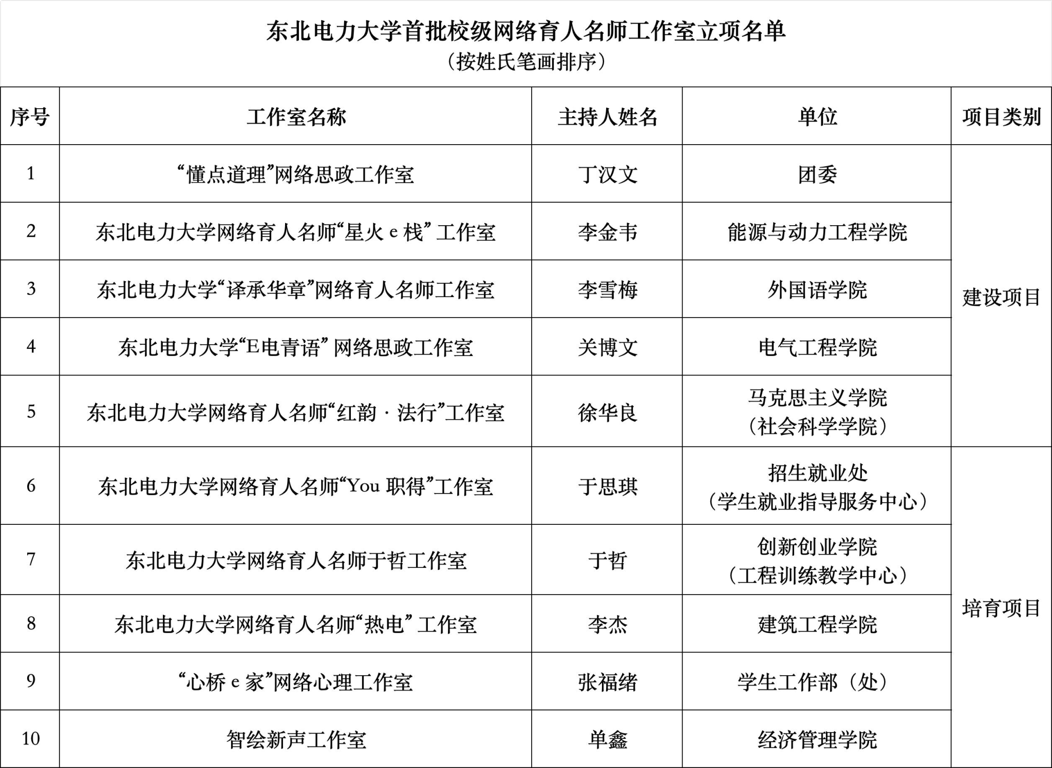 为深入落实立德树人根本任务,推动“时代新人铸魂工程”提质升级,切实加强学校网络育人名师工作室建设,推动学校网络思想政治工作高质量发展,学校开展了东北电力大学网络育人名师工作室建设工作。