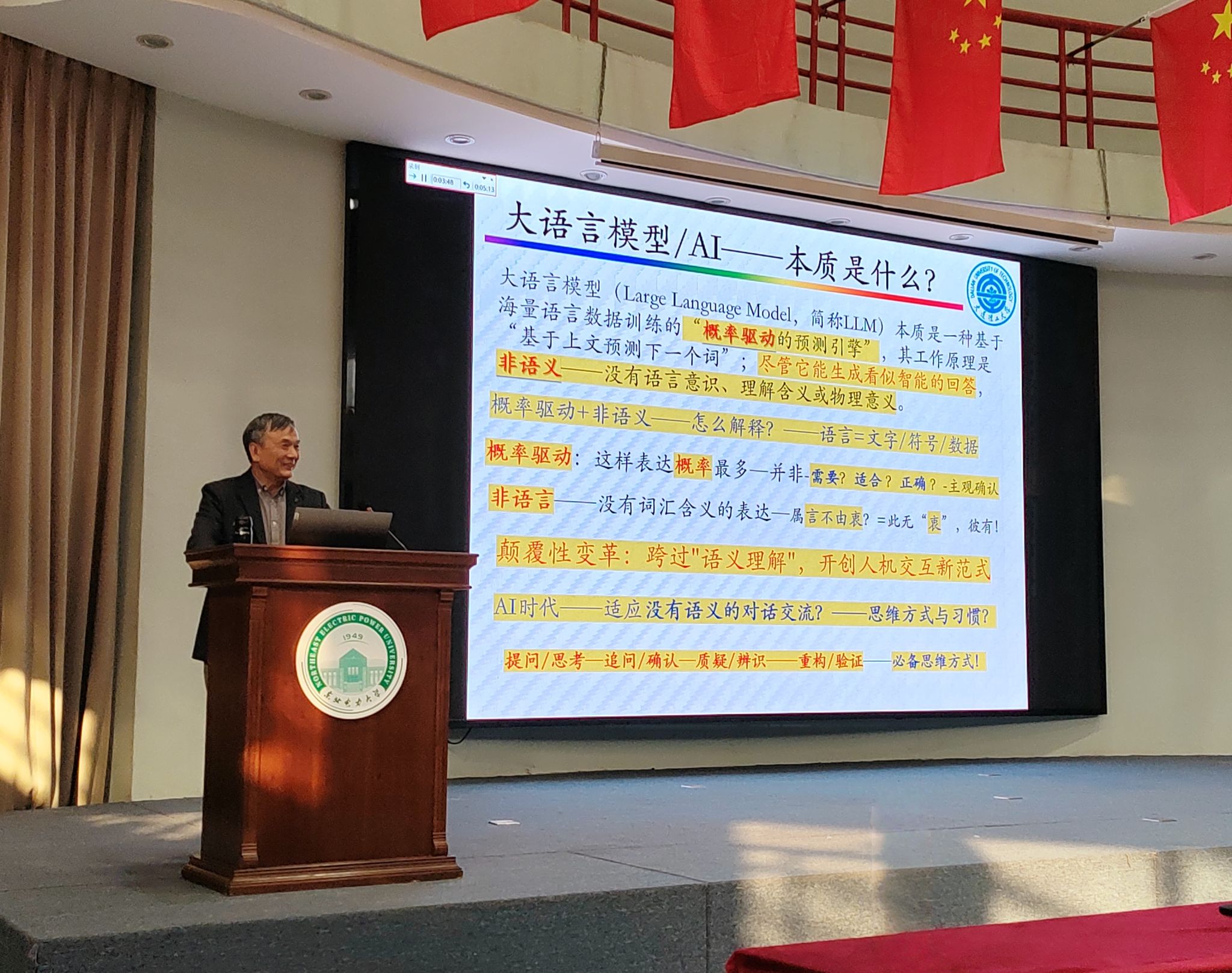 王德伦教授以“新工科机械基础课程AI大模型教学模式研究与初步实践”为题,结合其新工科机械基础课程项目式教学研究成果,系统阐述了AI大模型在教学中的定位、应用路径及实践成效。报告中,他从大语言模型概述入手,深入分析了AI大模型与课程教学的融合方式,重点介绍了基于AI大模型的机械原理教学设计,并以“行走机器人机构运动学分析”为例,现场展示了课堂教学的实际应用案例。报告中,王德伦教授还展示了新工科项目式教学模式下本科生的优秀作品,生动体现了AI赋能教学创新的良好效果,引发了在场师生的浓厚兴趣与热烈掌声。
