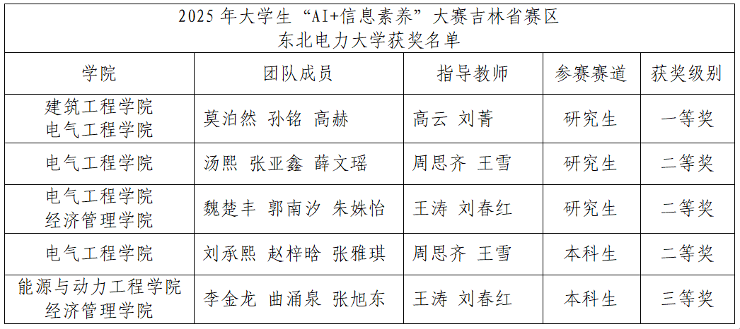 近日,2025 年大学生“AI + 信息素养大赛”吉林省赛区比赛落下帷幕,我校学子在赛事中成功斩获一等奖1项,同时获评多项荣誉。