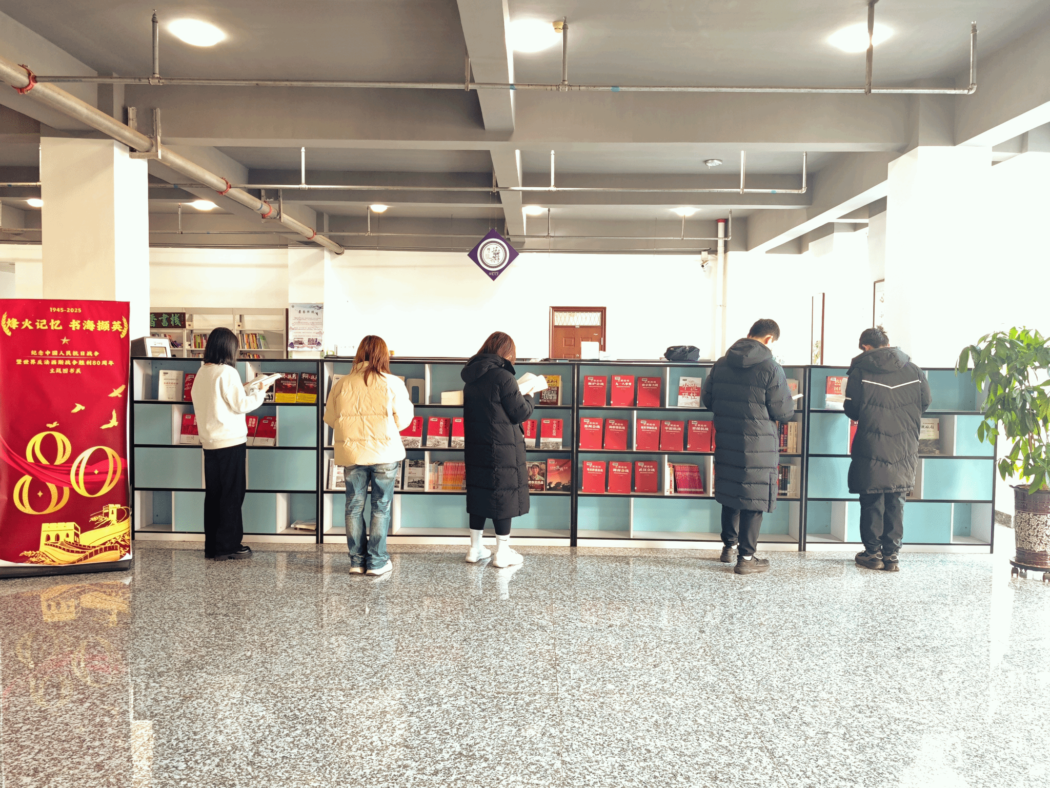 活动以书展为基石,9月同步开启“烽火记忆·书海撷英”线下展和“浩气长虹·光耀千秋”线上展,历时三个月,线下集中展出主题图书216册;线上分八期推送80种读物,为师生搭建权威自主学习平台。深化阅读体验方面,举办“我心中的抗战经典”读书分享会,6名学生围绕《四世同堂》等经典深度解读交流;21天读书打卡活动则培养师生持久阅读习惯,延伸历史思考深度。