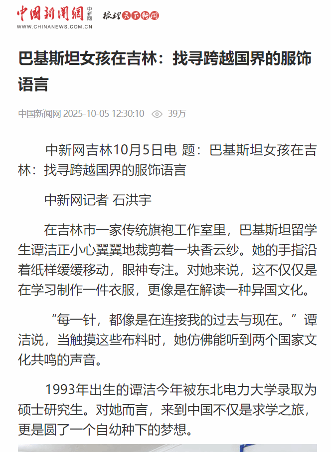 中国新闻网:巴基斯坦女孩在吉林:找寻跨越国界的服饰语言