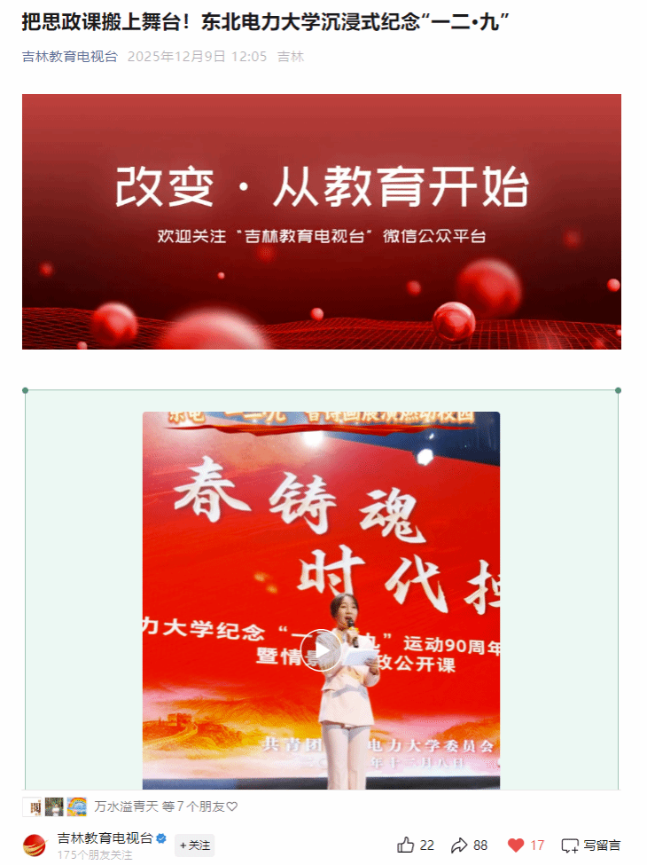 吉林教育电视台:把思政课搬上舞台!东北电力大学沉浸式纪念“一二•九”